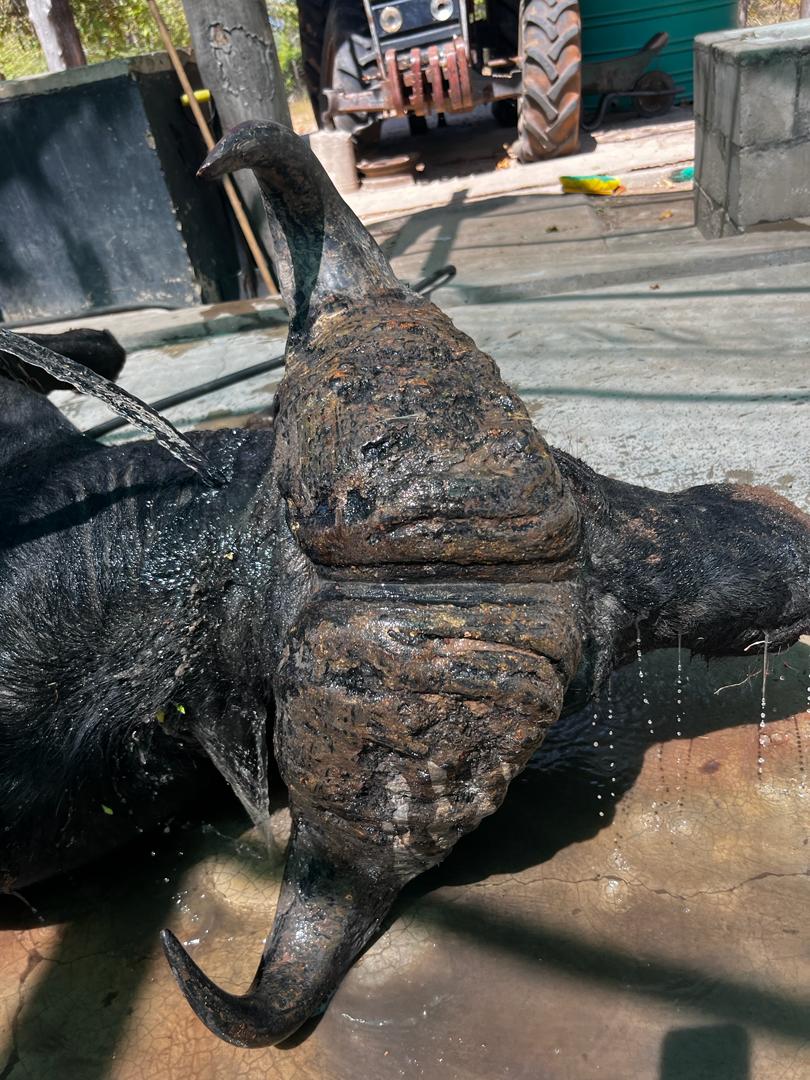 We saw more than a few but, on day 7 we connected with a bull that, in spite of me wearing white shorts, I shot. He is a special beauty and for the first time since 2009, a buffalo I am bringing back to Denmark. European mount. |