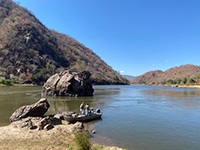 What a wonderful couple of days spent with these fine Gentlemen! We, TC and myself tracked multiple bulls including a herd which we saw many bulls but not what we were looking for. We eventually found two bull early one morning near Mururu camp which had laid up across the river called Munyimo. We tracked these bulls for 4hrs and eventually found them on top of a ridge rested up in the shade. Both bulls were great trophies! One in particular was exceptional and fitted the criteria of what we were looking for in a proper duggaboy! We butt scooched to within 35yards and both bills bulls stood up to feed. The bull which TC got eventually presented an opportunity to shoot which TC put in an amazing shot. The bull ran about 100yards and fell over. What a great hunt and an awesome bull!!! For the next few days we looked for kudu, walking into multiple springs covering some beautiful territory and we did see kudu but not what we wanted. We ended up on the last day of the safari on the mighty Zambezi river with TC, J and his dad with Gareth and myself fishing. Such a great hunt and hope to see these fine Gentlemen back soon! Cheers Boys and thanks again. |