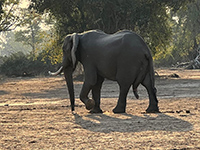 What a great time we had. BK hasn’t changed a bit since our last hunt in 2013 at Kazuma. He was full of fun and very entertaining. We struggled as the bulls weren’t around much. The first 2 days we paused with nothing to follow. Day 3 we tracked up 5 bulls and turned down a 50/55 pounder as I was hoping for a Maitengwe Monster. Almost regretted it as the next day the wind was terrible, and we tracked 3 big bulls that joined with the bulls from the day before. The wind was so bad. They smelled us and left. It was slim pickings from then, although we did see quite a few cows and young bulls. Day 8 we tracked a beautiful big track for most of the day. Day 9 we came across 3 tracks which turned into 5 bulls, once we caught them. There was one old bull with them that we decided was good enough for the 9th day. BK made a good shot (frontal), but I believe the bullet deflected and didn’t drop the bull. It took a small war to finish the job and not a reflection on BKs shooting. After inspecting the skull after skinning we found that the bullets through skull had deflected and not found the brain. A magnificent elephant and a great finish. Thanks BK for joining us once again. |