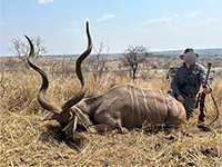 An absolute pleasure to hunt with JM. He proved himself to be a good hunter with excellent marksmanship. He had the joy of a real buffalo hunt with hard work. Long hours and patience and perseverance. We tried hard for a kudu bull but unfortunately the only opportunity the we turned down was a young bull. |