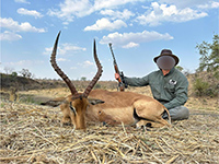 It was a great hunt, and just what I hoped it would be. A day-long stalk that ends with a good first shot, a bit of follow up shooting, and a death bellow...couldn't ask for much more for a first time buff. I don't know if Gareth shared the video of the hyenas calling and moving in front of the blind but that was especially amazing; I felt like I was in some nat geo wildlife documentary. The cherry on top was the nice impala ram at the end of the hunt. Good stalk, got to see and hear a bit of rutting behavior, and an exciting/challenging shot to wrap up the stalk. It was a world class experience. I enjoyed hunting with Gareth and his team. All the CMS staff at both Matombo and Karunga were great and took care of me to a degree that made me feel a bit doted on. The buffalo tail and brisket stews with sadza were fantastic and will be remembered for a long time to come. As a wildlife biologist who works for the state of Idaho managing our wildlife and hunting opportunities, I really enjoyed seeing the Zim model of wildlife conservation. I asked a million questions to Gareth and if it annoyed him he did a good job of not letting it show! Hell, Gareth even did a good job humoring me checking off my bird list and plant questions. I feel like the story behind what folks like you all do in partnership with the Parks and the Communal/campfire areas is a fantastic story. I wish it was more widely told on a platform that's accessible to a wider audience than other hunters. Lastly, I really enjoyed the drives to and from Camp with Bruce and Royal. I'm an avid reader and had picked through a couple history books on Zim as well as a couple of memoirs from more recent times. Both of those guys gave interesting perspectives on all the questions that came from those readings. Great discussions with both. The dust hasn't even settled and I'm already thinking about how to come back, and convince others to hunt with you all as well. |