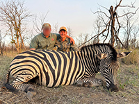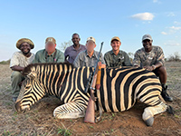 My all-time favorite client. The plan was to take an ancient old dugga boy, with DP 500 WR double at close quarters. We the most wonderful hunt. We had lions charge us whilst on buff trails. Saw 100s of elephants, hand the pleasure of Richard Harland and his charming lady Peggy to entertain us in the evenings. On the successful hunt we picked up our old bull for several kilometers and found time coming back on his tracks. DP dropped him at 11 yards and he did not take a step. We also go a zebra. Looking forward to next year. |