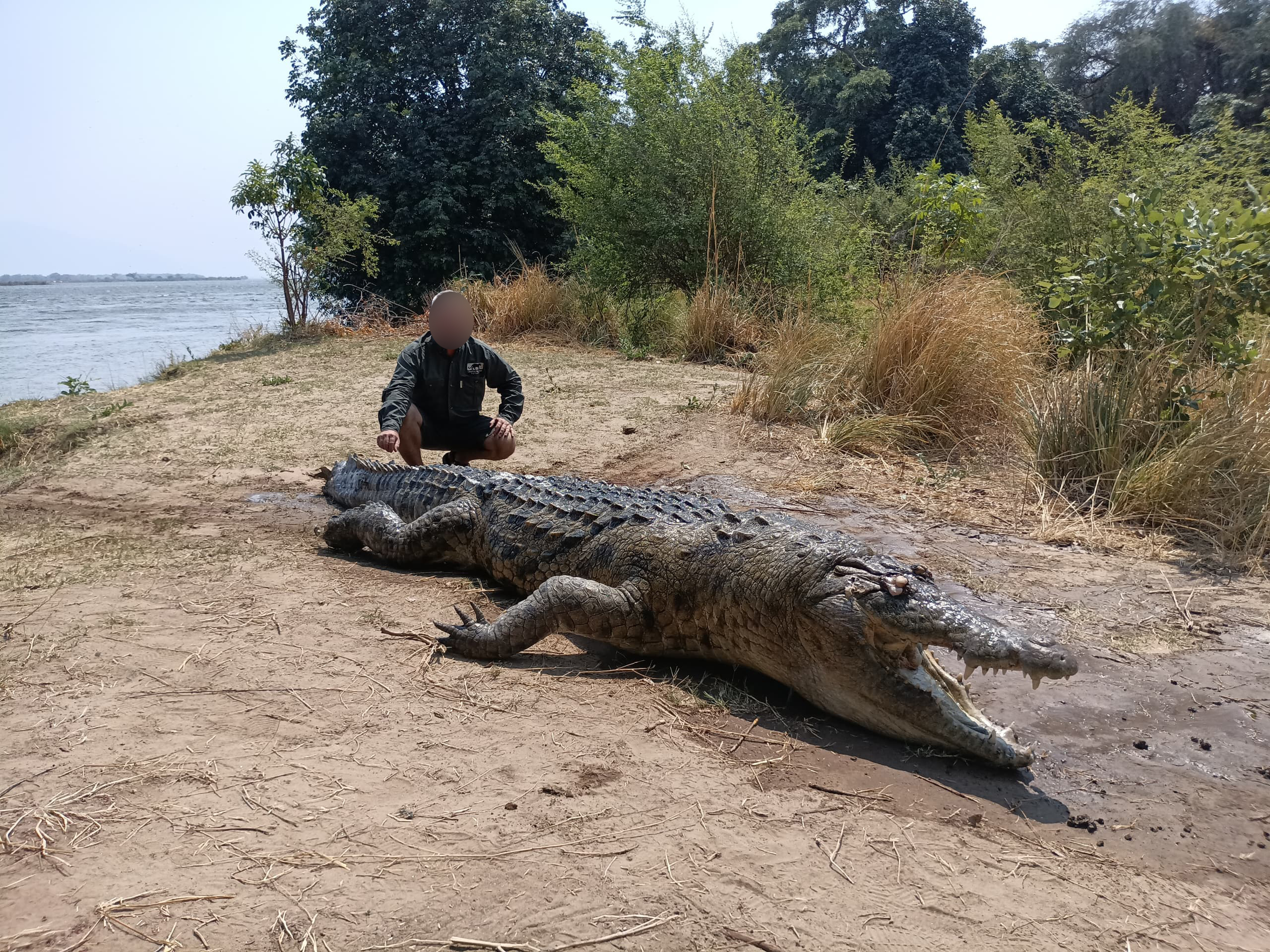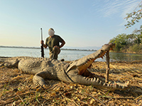 What a pleasure to have JM back with us. On this safari. We were after crocodile mainly. The first few days we tried to hunt zebra and scout for a croc. Day four JM decided we should hunt hippo for bait. We shot out hippo and recovered it and having time we found a place to bait and build a blind ready for the next day. Day five we baited and shot a monster 13 foot crocodile. We spent the next few days after zebra and hyena. We came close few times but no luck with wind etc. Till next time JM see you soon Buddy! |