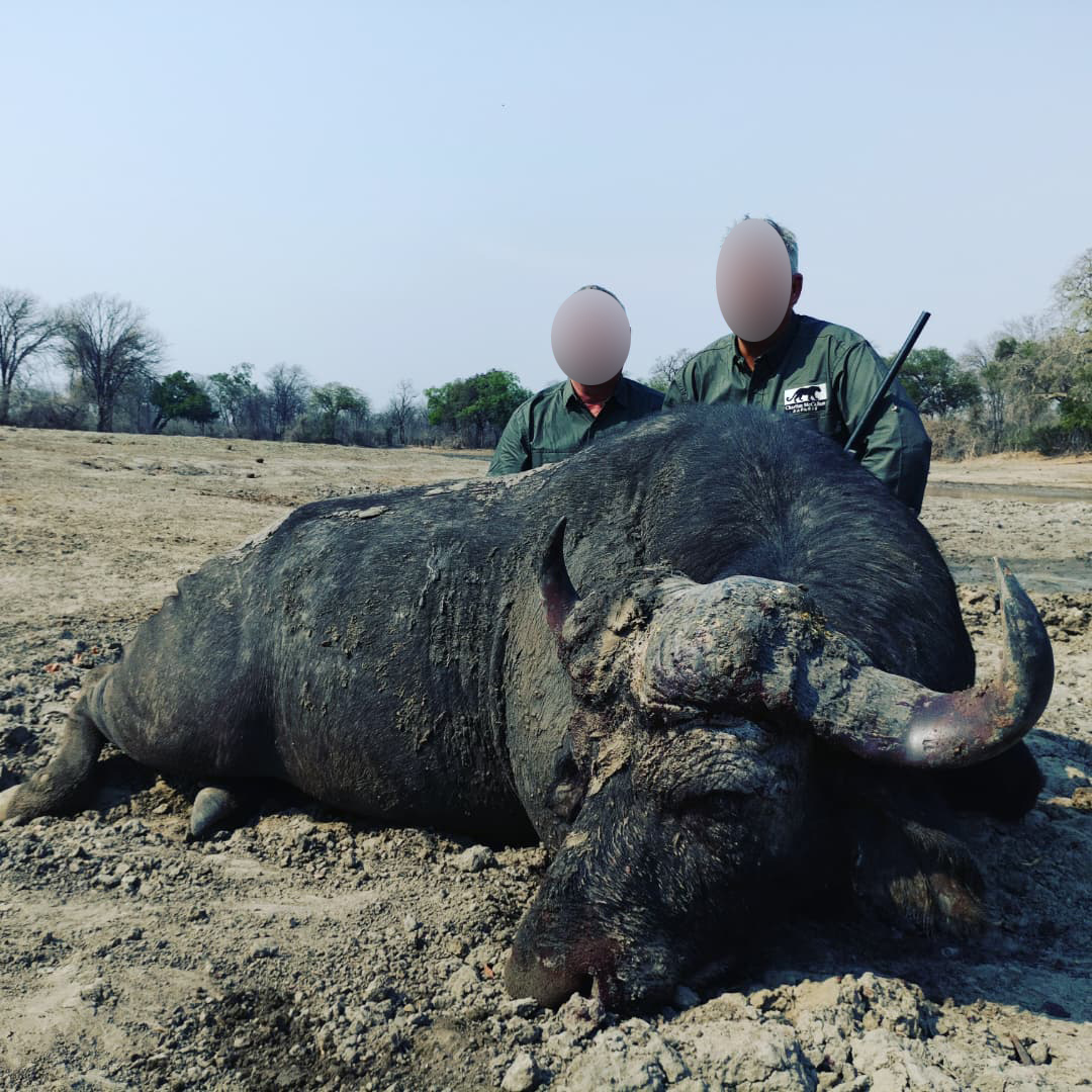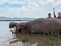 Some of my all-time favorite clients. This time we wanted 2 dugga boys at close quarters and a dry land hippo. The first buff was hot but unfortunately wounded and we got it the following day – great old bull with a wonderful 120 year old Rigby 470. The next buff was an amazing tracking and crawling session to get to 25 yards, for a nice old bull which PC took perfectly. The loan hippo bull was a great hunt. We tracked one that left the area and then we found another bull resting away from the river and PC brained it perfectly from 20 yards. Great hunt. Wonderful people with lots of laughs. Looking forward to our next hunt in 2027 |