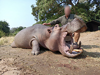 A great hunt with SB and EVDW. EVDW got his buff on day 3. We tracked buff for the first 2 days, but no shot presented. We picked up tracks of 4 bulls early, bumped them a few times, then caught up with them and EVDW got a shot in at a great old bull. We waited a little while and then followed up and finished him off. The next morning Simon shot his buff out on a group of 7 bulls. Perfect heart shot. That afternoon EVDW shot a beautiful croc, but, unfortunately it just managed to slip into the water and was gone. We searched to no avail, but a few days later we found it floating. We then spent a couple of days hunting hippo on the river. We found an old bull in a pod around 50 m from the bank. SB made a perfect brain shot. A successful and fun hunt and I look forward to their hunts booked for next year. |