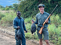 Truly such a fun and high energy hunt, with two hunters who live their lives by the motto blood type B+! With a B+ attitude, great shooting and outstanding sense of humor, both P and F I thought did extremely well. A brace of excellent dagga boys, a good old elephant bull, a big old tom leopard, a massive kudu, big old hippo bull, bushpig and more in two weeks we really did have an excellent hunt. Rounded off with a bit of bird shooting – what more could one ask for? Dande really produced for us. |