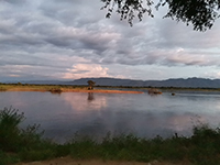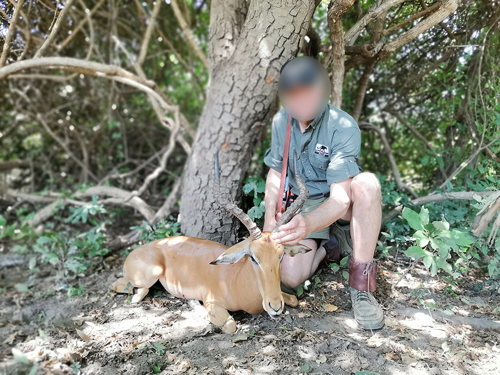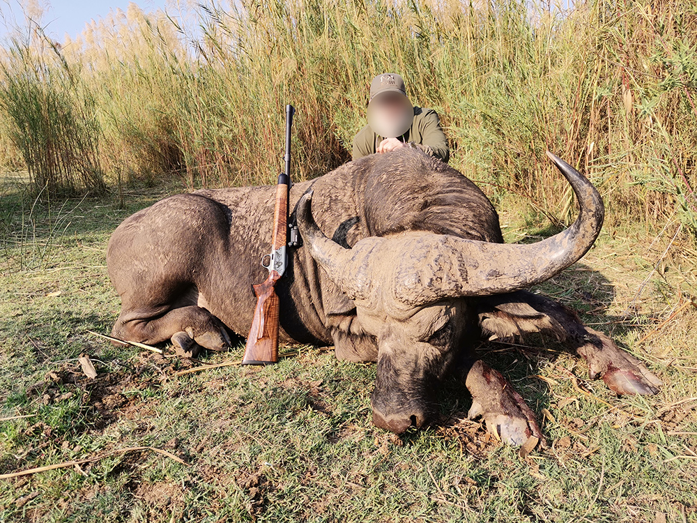 This year we went hunting in Nyakasanga with Alan and David in the last two weeks of March. The first three days were really difficult because of heavy rain during the night, followed by unfavorable road conditions in some parts of the area. United we made the best of it and so we had hunting success even these hard days. Some days heat and very high humidity pushed us to our limits during our game drives. But with persistence and endurance Alan set an example we all followed. So we managed to have great hunting experiences even on these extra hot and muggy days. On a walk back from a stalk - in addition to great plains game hunts - we were lucky to spot an imposing hippo bull in a very big lake. We took the opportunity and I was able to shoot the bull at 60m with a frontal brain shot - a great and exciting experience because the bull was very nervous and threatened to notice and attack us. In two exciting and thrilling buffalo hunts, we also had great success: T. was able to kill her very first buffalo with her .416 in a thick bush at 15m - under difficult conditions with a perfect shot. We still wonder how Alan spotted the buffalo in this dense bush and brought T. so close. It was an unforgettable experience for her, which will remain in her memory for the rest of her life. After a two hours stalk, E. was able to get a very well placed shot with the .416 at a great buffalo. Nevertheless a search was necessary, where E. was able to attach two more good shots. One can imagine that a buffalo search is connected with particular tension. By the end, E. had to rely completely on her PH Alan, who kept E. within shooting distance to the buffalo very professional and with great care. In this 14 days of hunting we saw countless elephants and stalked about 9 or 10 bulls - four really strong ones being tagged. Finally we were lucky and able to spot a suitable elephant bull at the last hunting day - taken by frontal brain shot with 500 Jeffery. Every single day we got an insight in Alan's great experience with big five - all time he gave us a lot of self-confidence and safety on this great dangerous game. The camp is located right next to Zambezi and fulfils your stay with fascinating moments - a marvellous and exciting experience. Sometimes lions, hyenas and elephants track through the camp. Alan, David and their crew, as well as the entire environment create this hunt to an unforgettable, amazing adventure. It's a perfect location with breath taking natural scenery and extremely nice and competent. Greetings to Zimbabwe |
