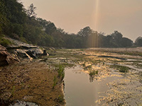 I heartily anticipated this third great hunt with CMS after earlier hunts in Dande and Dande East. As Tuskless Elephant and Eland were the priority game, Nyakasanga was chosen as the prime concession and as plans for a new, inland flycamp didn’t quite work out the camp setting was instead on the Zambezi banks among Hippo, Elephant, Crocs, Hyena and Lions somewhat upstream from the main Nyakasanga camp. It was perfect. Coincidentally, a famous hunter, LS of USA, was hunting from the main Nyakasanga camp and we got to meet and chat a few times during our hunts. Due to the many pans and proximity to Mana Pools National Park Nyakasanga is loaded with game. Every day sightings on our walks included Impala (thousands), Waterbuck, Zebra, Elephant (many), Kudu, Warthogs, Wild Dogs, Cape Buffalo, Baboon, Duiker and Grysbok. The gently contoured landscape has a diversity of hunting and habitat. Wide, sandy river beds, watery pans, open grassy plains, open Mopane forest and the thickest, thorniest jesse! All providing ample game encounters and hunting opportunities.