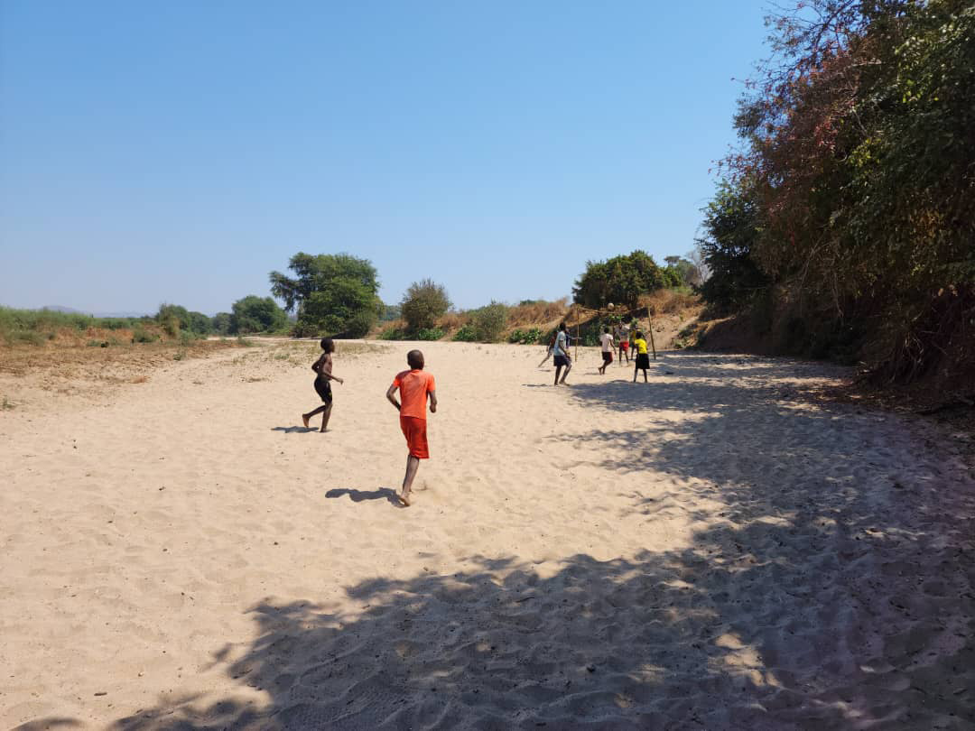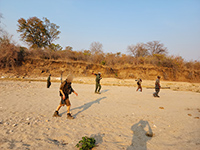 A true Zambezi valley elephant hunt! A lovely old bull taken late on the 12th day, lots of tracking and walking, multiply approaches. A total of over 60 bulls seen in those 12 days. Heart warming taking the donations from JE to the local school - the kids were so excited to play with the footballs and frisbees. |