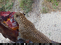We had a tough time, with leopard. The first half the warden wouldn’t allow us to bait along any rivers or near pans with or without water. We did get a lot of cats feeding but not many that met with the aging criteria. The full moon played a role in keeping the leopard from coming in daylight and the impala were in full rut, so the cats were not hungry. We did sit 5 times but no luck. |