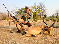This was my first safari, so did not know what to expect. Everything was made so easy by you guys. From the time we landed to the time we got to Pedza Camp was flawless. The accommodations at camp were great and comfortable. The food was fantastic as was being able to request meals from our animals. The hunt was fun and difficult, which I appreciated. We chased buffalo herds and dagga boys until having success on day 4. For plains game we had a consistent success targeting river water holes, and connected on impala, bushbuck and kudu. We had a great stalk on a zebra with success. Dean was a fantastic PH and put me in the position where I just had to make my shots. You can’t ask for any more out of a PH. His knowledge of the area and animals is unrivaled, and I owe much of the success we had to him. Thank you for a great two weeks in the bush, for me it was a trip of a lifetime! |